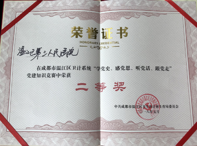 成都市温江区第三人民医院荣获“学党史、感党恩、听党话、跟党走”      党建知识竞赛二等奖