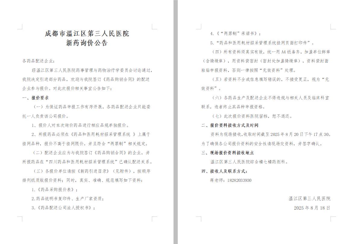 区三医院新药询价公告