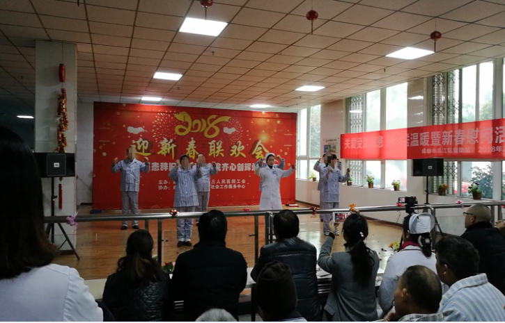 2018年新春,温江区第三人民医院开展了“医患辞旧迎新春 全院齐心创辉煌”为主题的迎新春工休联欢会活动。医院为了营造温馨、欢乐的人文医院文化氛围,进一步密切医患关系、加强医患互动、增强团队凝聚力。医院2018年2月6日举办迎春联欢会。各病区、各部门都积极踊跃参与,让我们的住院患者有个愉快的心情过春节。