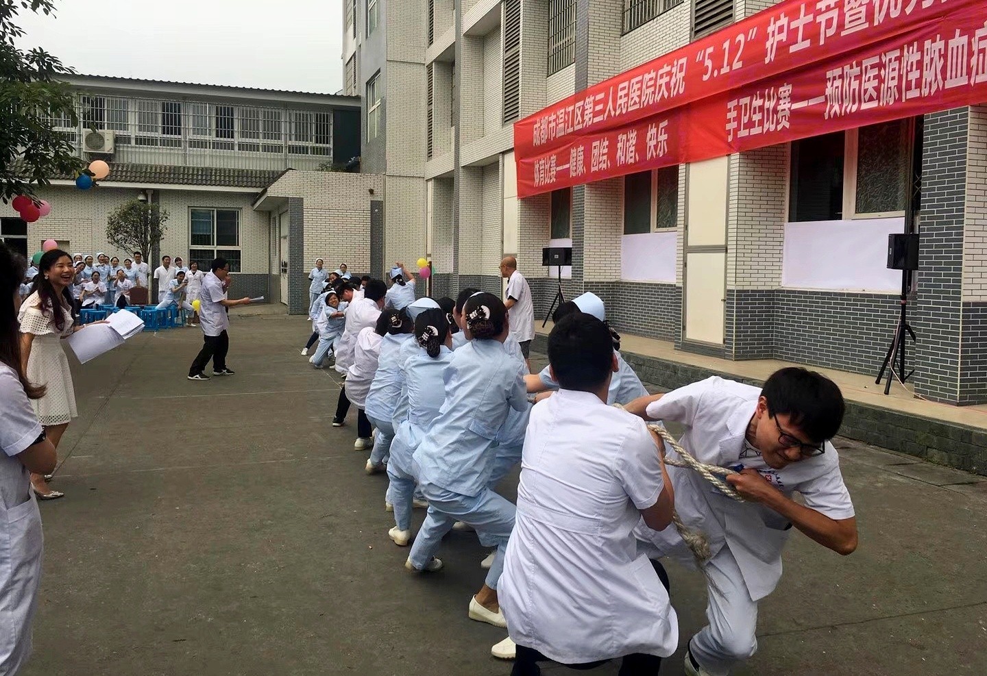 庆祝活动分为院长致辞、手卫生宣传比赛、团体体育比赛、表彰颁奖和活动总结等五个环节。首先,院长魏传峰代表医院领导班子向全体护理人员表达了节日的问候和祝福,肯定了大家在过去一年里所取得的成绩,勉励大家在今后的工作中要主动学习、善于思考、充满自信,继续弘扬南丁格尔精神,在普通但不平凡的事业中实现自己的人生价值。